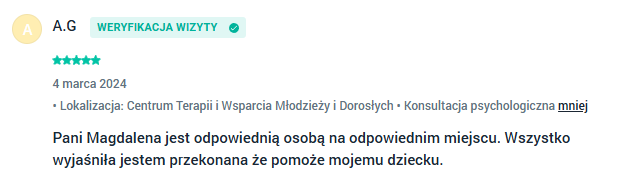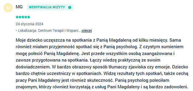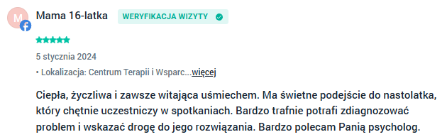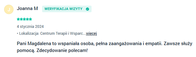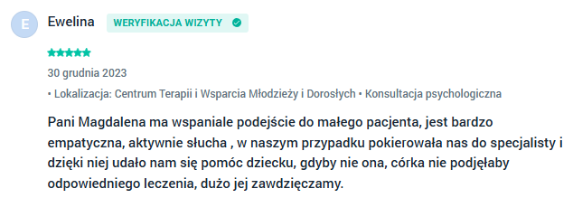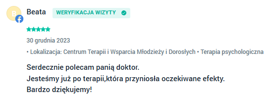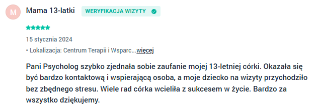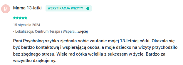 Wsparcie psychologiczne Bydgoszcz - opinie moich klientów wystawione w aplikacji Znany Lekarz